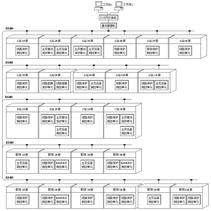(10)配电站10#屏柜:配2个DCAP -5000线路保护测控箱(兼有中低压线路阶段电流保护及断路器测控功能)。