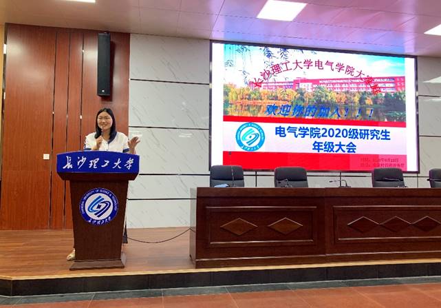 为了让新生尽快适应新环境、培养新动力、开拓新视野、树立新目标,9月13日晚,电气与信息工程学院在金盆岭校区四教报告厅召开了2020级研究生年级大会。会议由研究生辅导员欧彩玲主持,全体研一新生及研会干部参会。