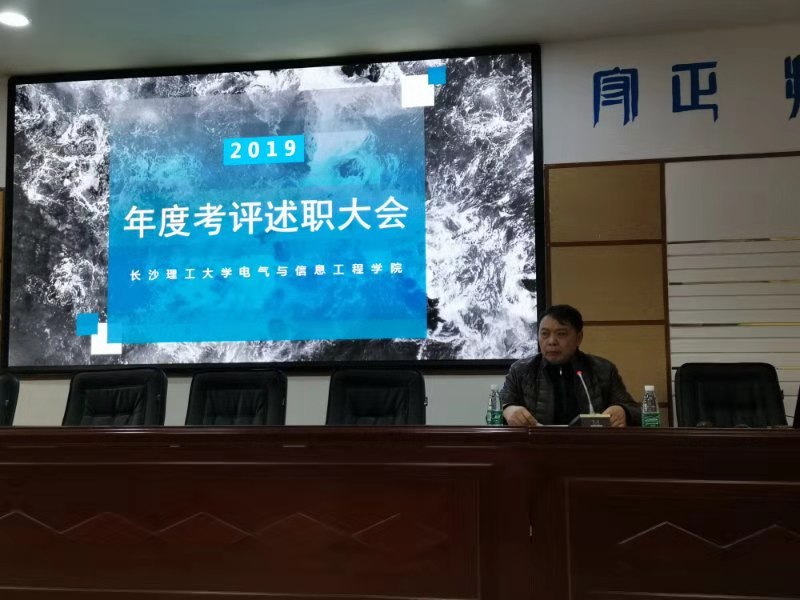 根据学校关于2019年学院教职工年度考核的通知,扎实推进学院工作责任制落实,营造创先争优的良好氛围,电气学院于12月24日下午在工一B503报告厅举行年度考评述职大会。会议由院党委书记符慧林主持,全院教职员工出席本次会议。