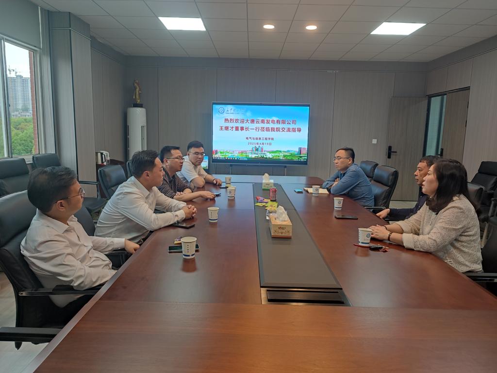 4月19日,大唐云南发电有限公司党委书记、董事长王继才一行来我院访问并与院党委书记丁丹、电网防灾减灾全国重点实验室副主任姜飞等院领导及教师代表座谈交流