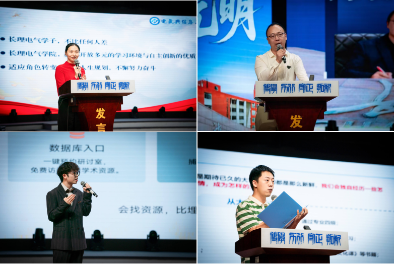 6名新生代表分享了初入校园的激动与憧憬;本科生张桓祯、研究生郭端格代表学长讲述了学习成长的经验与收获;青年教师周璇以“扬帆起航,不负韶华”为题,分享了育人初心与教育情怀;96级校友、科智防雷总经理郑智勇则深情回顾在校学习和毕业创业的感悟,并现场向母校捐赠100万元,唤起了全场“饮水思源,反哺情深”热烈回应。