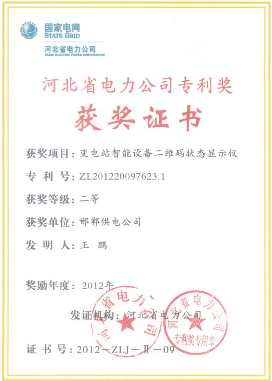 截止到2016年5月共获得国家专利23项,其中三项专利获得河北省电力公司专利二等奖、四项获得三等奖;全面质量管理成果(QC)获国家二等奖一项,省级成果奖三项,公司级一等奖三项;职工技术创新获省公司一等奖三项、二等奖一项、三等奖一项,优秀奖一项,市公司一等奖五项;中国电力企业联合会职工技术创新一等奖一项;河北省电力公司科技项目三等奖一项。
