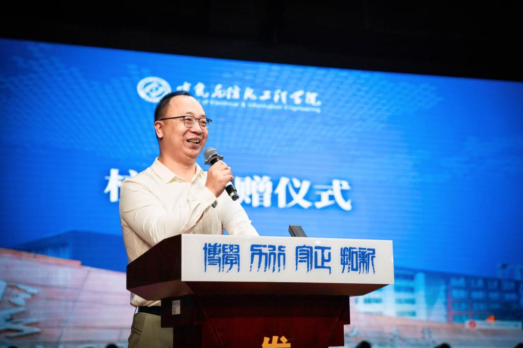 9月23日,学院1999届校友、长沙科智防雷工程有限公司董事长兼总经理郑智勇先生捐赠仪式在2025级新生“电苑第一课”现场举行。副校长张军辉出席并讲话,校友中心主任唐青,学校教育基金会秘书长肖晖,学工部、校团委相关领导,学院党委书记丁丹、院长陆佳政等院领导参加。