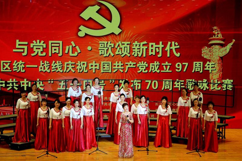 6月23日下午,长沙市天心区统一战线庆祝中国共产党成立97周年暨纪念中共中央“五一口号”发布70周年歌咏比赛在湖南省音乐厅举行。长沙市委常委、统战部长谭小平、云顶国际vip8866党委副书记邹宏如及省市区各级统战相关部门、民主党派组织领导出席了活动。