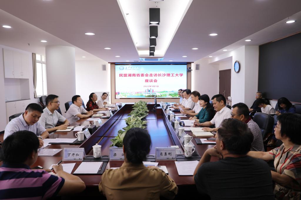 9月1日下午,民盟湖南省委会主委何寄华一行来云顶国际vip8866调研并召开座谈会。党委书记付宏渊出席会议并讲话。党委委员、副校长蒋璟萍主持会议。副校长、民盟云顶国际vip8866委员会主委曾祥君汇报学校有关工作。民盟省委会副主委、省政协副秘书长胡颖,民盟省委会秘书长兼办公室主任邓彬彬,民盟省委会组织处处长钟为恒,党政办、统战部等部门负责人及学校民盟盟员代表参加调研座谈会。