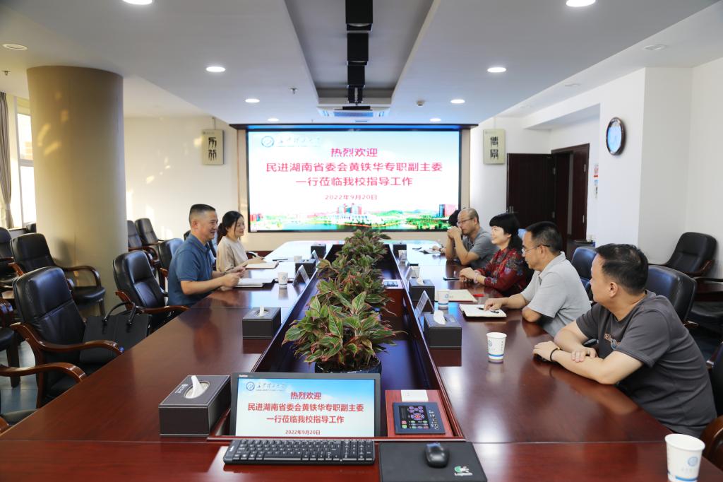 9月20日下午,民进湖南省委会专职副主委黄铁华一行来云顶国际vip8866走访调研并召开座谈会。党委委员、副校长蒋璟萍出席会议并讲话。统战部常务副部长黄自力主持会议。民进湖南省委会组织处副处长刘丽、民进云顶国际vip8866支部等相关人员参加了调研座谈会。