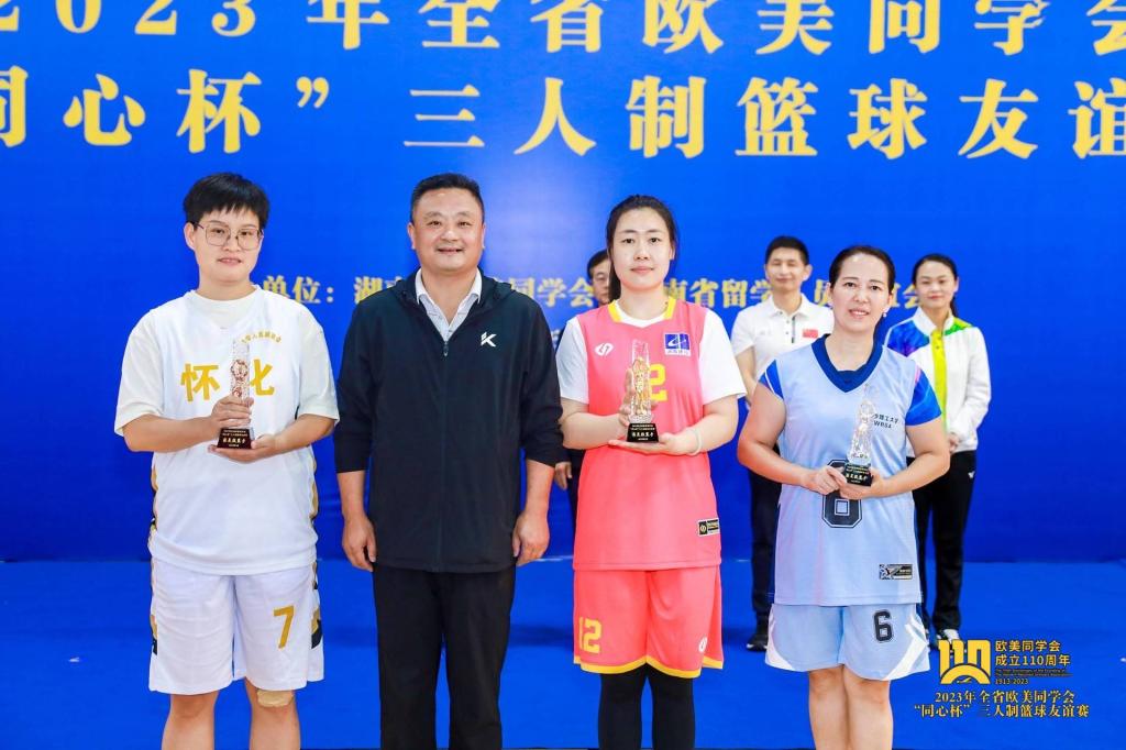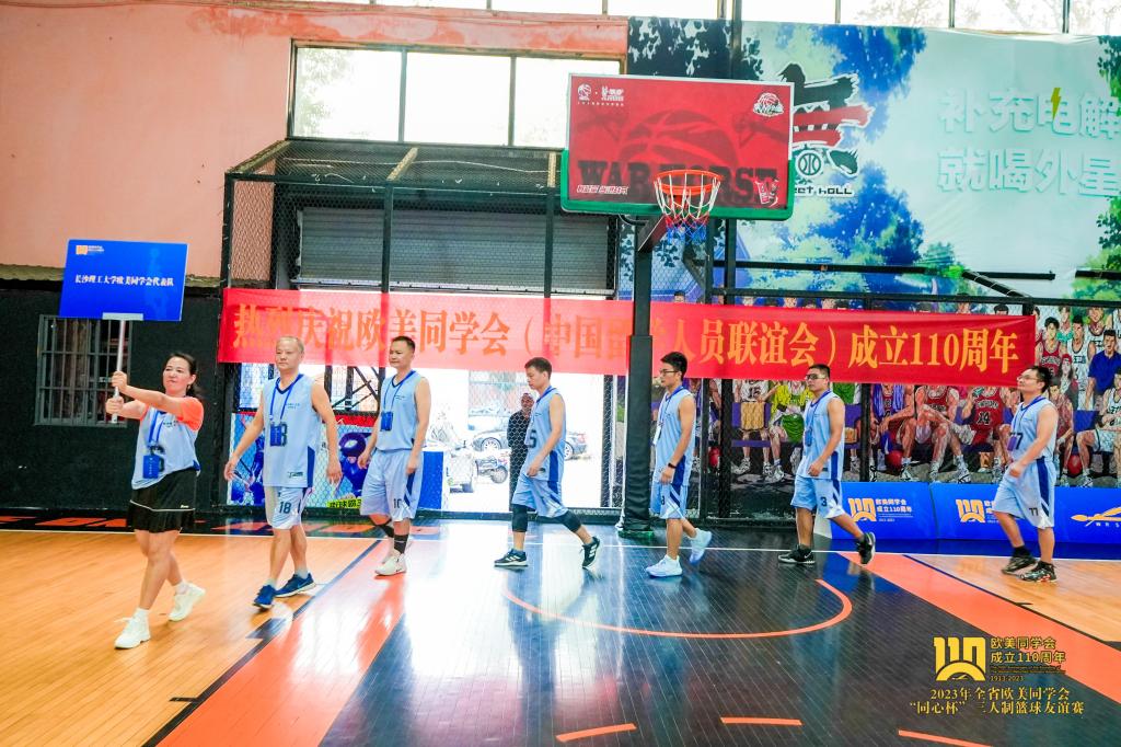 为庆祝欧美同学会成立110周年,9月23至24日,由湖南省欧美同学会主办的2023年全省欧美同学会“同心杯”三人制篮球友谊在长沙成功举行。省欧美同学会会长、省政协原副主席张大方宣布比赛开幕并为比赛开球。来自全省各市州、高校和国有企业的10支队伍参赛,云顶国际vip8866欧美同学会同心篮球队作为高校代表队参加了此次比赛。