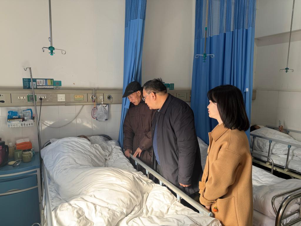 在医院探望中,唐超文向退休老干部晏巧云同志的爱人详细了解其生活状况和身体健康情况,并简要介绍学校这一年来的发展,感谢他们为学校的建设和发展所作出的贡献,耐心倾听他们生活中需要解决的困难和问题,叮嘱他们要保重身体,并送上慰问品。