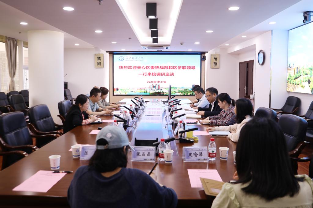 4月27日,天心区委统战部常务副部长胡志坚,区侨联主席汤沛、副主席饶丽等一行到校就驻区高校校地联动工作开展调研。学校统战部常务副部长唐超文主持会议,统战部副部长刘仁及校侨联副主席于华南、钟芙蓉参加座谈。