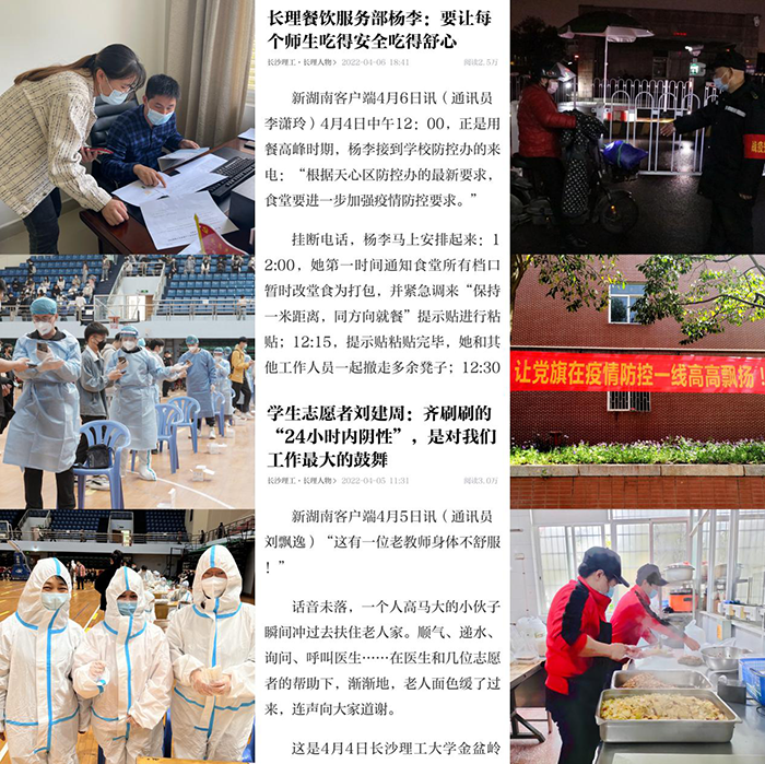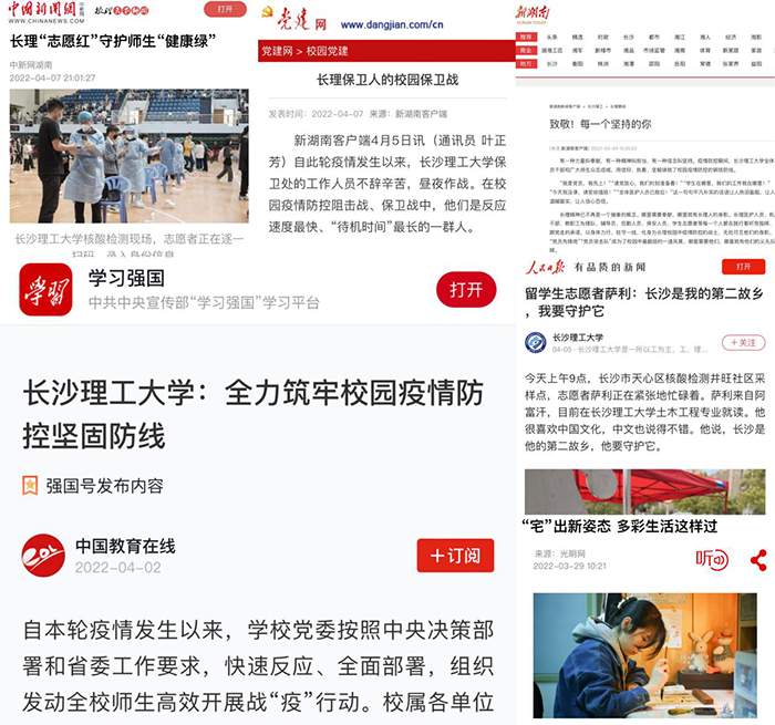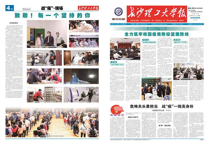 突出重点,加大疫情防控宣传力度。大力弘扬伟大抗疫精神,夯实校园宣传阵地,突出长理抗“疫”特色,在学校办公楼、教学楼、宿舍楼等各楼栋张贴宣传海报800余张,在校园LED屏等广泛播放防疫宣传标语口号,进一步扩大防疫宣传覆盖面。扎根各大媒体做好疫情防控对外宣传工作,在中新网、党建网、光明网、学习强国、湖南日报等媒体平台发布防疫对外宣传稿件共计151篇,其中中央级媒体报道41篇。校报推出“战‘疫’现场”专刊,全面深入宣传学校党委疫情防控方针政策,报道全校师生员工众志成城、齐心抗疫的感人故事。创新利用新媒体宣传方式,在微信微博、视频号、抖音等官方平台及时推送发布疫情防控相关信息,制作防疫宣传公众号推文12条,微视频7条,抖音6条,人物宣传海报9张。撰写疫情防控评论文章5篇。疫情防控宣传全媒体点击量共计超300W+。
