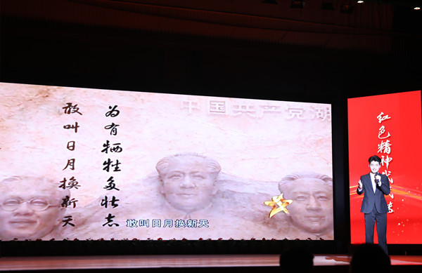 一群湖南人,半部近代史。“忠烈为民的好学生、忠义教子的好母亲”杨开慧;趁敌不备,忍着剧痛,从伤口处掏出肠子,用力绞断,壮烈牺牲的陈树湘;“两把菜刀闹革命”的开国元帅贺龙;背女出征的张国华,巾帼不让须眉的曾志……一位位共产党员用自己的青春乃至生命书写了中国的历史,翻开了一页页党的篇章,是他们把满腔热血挥洒在祖国的大地,让红色精神薪火相传。宣讲会上,“红色青年宣讲团”的10名成员讲述了湖湘英雄儿女在波澜壮阔的中国近现代革命征程中,在炮火与硝烟里为民族独立和人民解放中呼喊和奋战的故事。