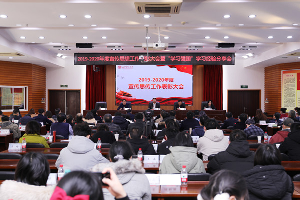 会议在学校内外宣传工作视频《我们在现场》播放中开始。邹宏如宣读了表彰文件,通报了2019-2020年度宣传思想工作先进集体、先进个人、优秀学生通讯员表彰名单,“学习强国”学习先进单位和学习达人、学习之星名单。他勉励受表彰的集体和个人珍惜荣誉,再接再厉,以更加积极的态度和更加饱满的热情宣传学校改革发展中的新举措、新成就,挖掘更多立德树人的典型人物与先进事迹,大力培育和践行社会主义核心价值观,进一步激发和汇聚师生正能量,为“双一流”建设和跻身百强作出更大贡献。他希望全校各单位认真总结好的学习经验和做法,使“学习强国”学习平台成为广大党员干部群众学习宣传贯彻习近平新时代中国特色社会主义思想的重要载体,推动云顶国际vip8866“学习强国”学习平台工作迈上新台阶、取得新成效。