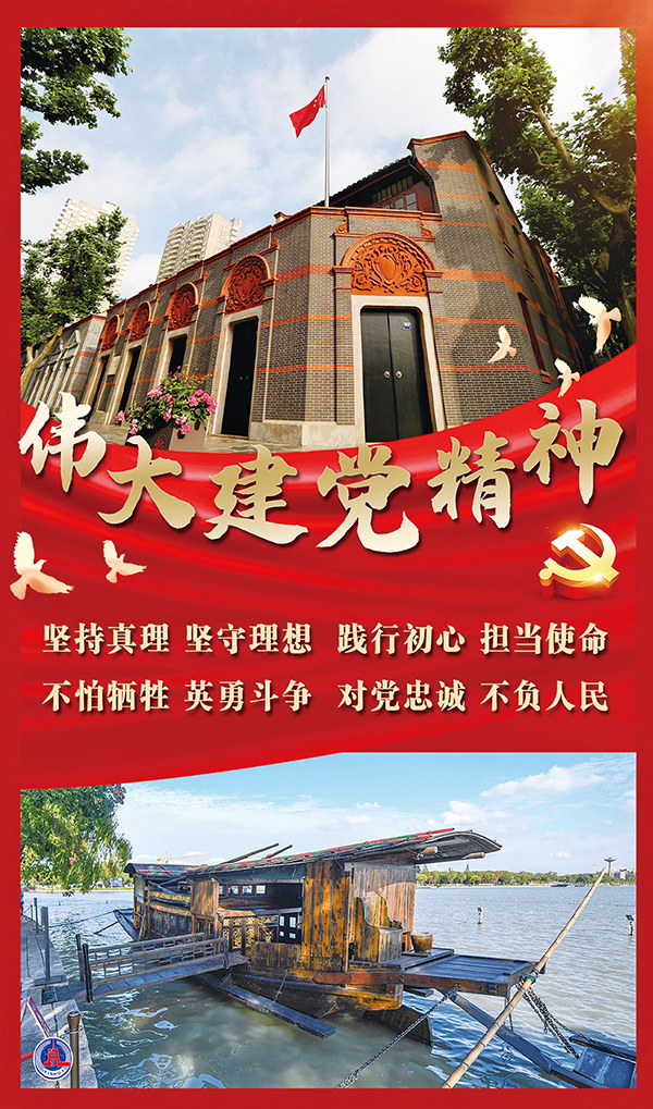 伟大建党精神,高度概括了中国共产党百年奋斗的历史逻辑、理论逻辑和实践逻辑,为人们深刻理解“中国共产党为什么能”提供了一把“金钥匙”,蕴含着百年大党依然风华正茂的精神密码。图为伟大建党精神海报。 新华社发