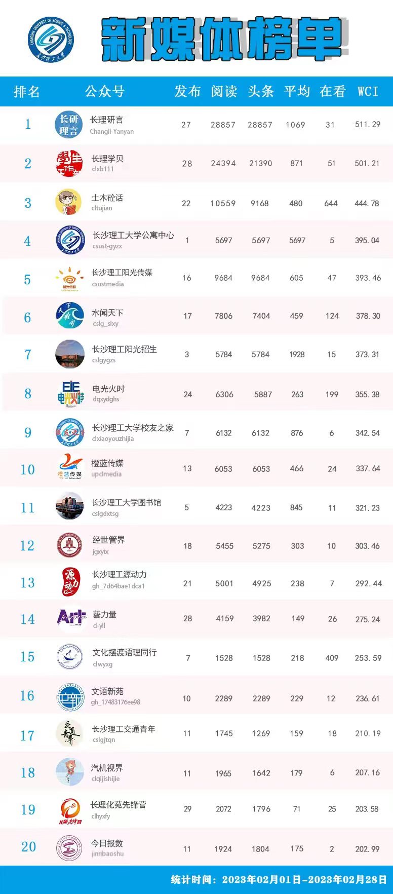 校属单位微信公众号排名(2023年2月)