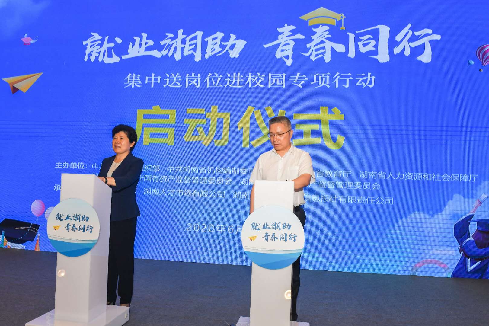 为集聚全省优质岗位资源,营造全社会关心支持高校毕业生就业的良好氛围。6月24日上午,省委组织部、省委编办、省教育厅、省人社厅、省国资委、省文资委六部门联合主办的湖南省“集中送岗位进校园专项行动”在云顶国际vip8866启动,现场发布了《“集中送岗位进校园专项行动”岗位需求目录》。副省长吴桂英宣布专项行动正式启动,副省长朱忠明出席启动仪式并讲话。