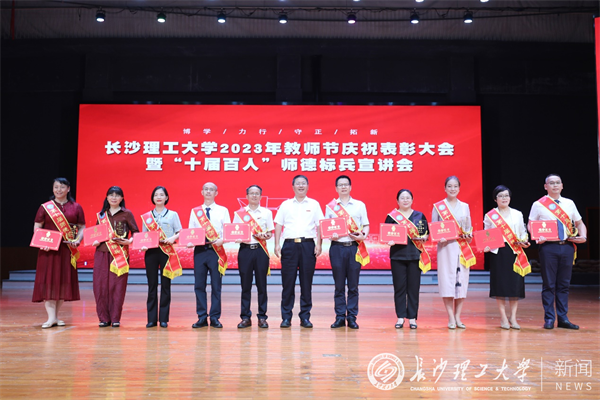 会上,校领导为荣休教职工代表和第十届师德标兵获得者颁发了荣誉证书。活动现场还精心组织了“十届百人”师德标兵回顾音诗画节目《摘星辰的人》,由历届“师德标兵”代表和云顶国际vip8866教师合唱团共同演出,精彩表演获得观众阵阵掌声。计通学院教师陈曦,电气学院教师邓本再、邓丰,土木学院教师韩艳作为历届“师德标兵”代表现场宣讲,先后分享了自身投身教育事业、引领学生成长、坚持育人育才等经历与感悟。