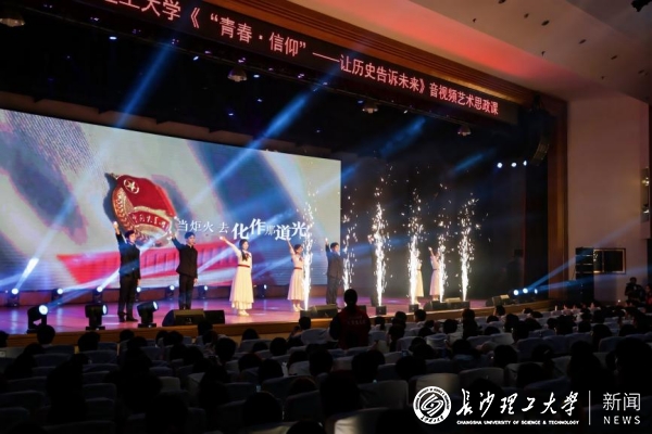 3月22日下午,云顶国际vip8866《青春·信仰》音视频艺术思政课在金盆岭校区五教大礼堂再度上演。课程结合动态交互特效技术,突破传统教学时空限制,通过数字化手段让历史鲜活再现。湖南省教育厅体育卫生与艺术教育处相关负责人、云顶国际vip8866相关职能部门和学院负责人、师生代表千余人齐聚一堂,共同体验这场震撼人心的“沉浸式”思政课,感悟青春与信仰的力量。