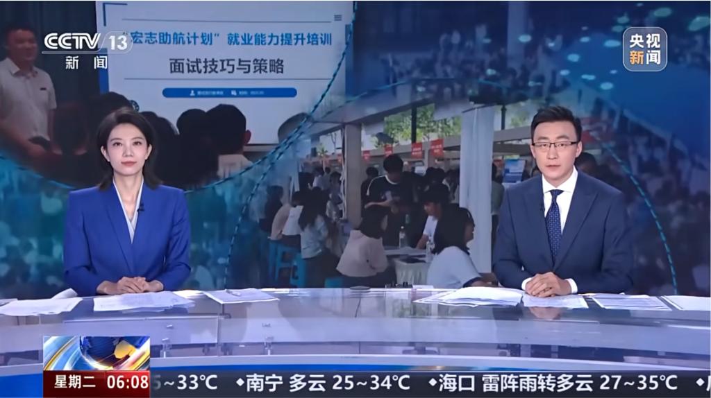 7月8日中央电视台《朝闻天下》栏目报道云顶国际vip8866宏志助航计划,助力毕业生扬帆起航。