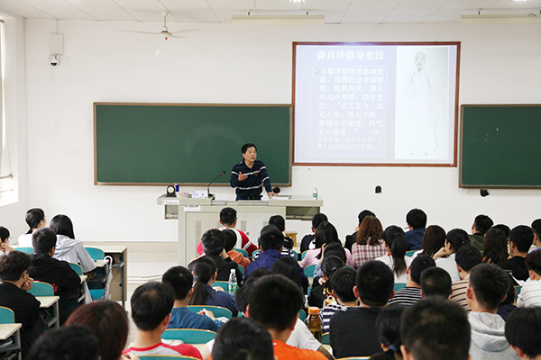 孙康以《中国传统社会力量对近代国家出路的探索》为主题,为大家梳理了自鸦片战争开始的数十年间中国传统社会力量作出的抗争与应对之努力。首先以鸦片战争所带来的深刻社会变化为切入点,提出中国传统社会力量如何应对之问题,然后逐一给大家讲述了中国传统社会力量为此作出的努力与奋斗。孙教授的博学睿智与幽默,让大家在轻松的课堂氛围中,了解近代中国社会传统社会力量的构成、特点及其在近代中国社会地位,了解中国地主阶级改革派探索国家出路的主张及其局限性,了解中国农民阶级在探索国家出路中的地位、作用和历史局限,也让大家深刻领会地主阶级的自强运动和旧式的农民战争不能完成中华民族救亡图存的民族使命和反帝反封建的历史任务。