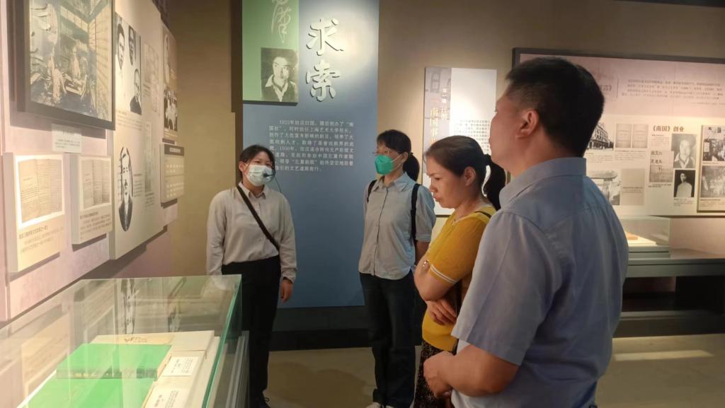 在讲解员的引导和讲解下,党员们先后参观田汉艺术中心、田汉故居,认真观摩人民艺术家田汉从求学启蒙到文化巨匠的成长历程,深入了解田汉的艺术成就与中华人民共和国《义勇军进行曲》的创作经过,深刻领略田汉以文艺为武器为国家独立和民族解放事业做出的杰出贡献,深深感悟田汉“宁流血,不曲笔”追求光明与真理的奋斗精神。