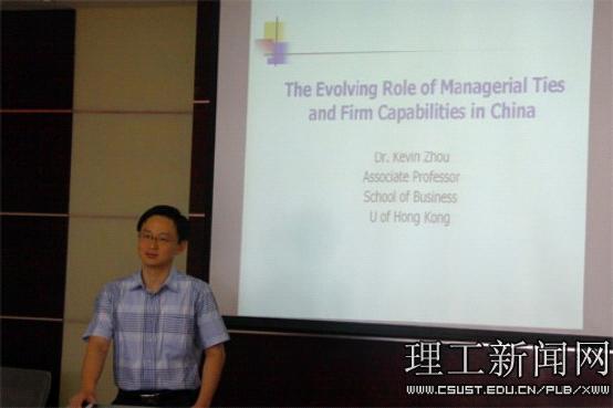 周政教授学术报告的题目为The Evolving Role of Managerial Ties and Firm Capabilities in China。周政教授从自己在国际顶尖管理学术期刊上发表多篇论文的经验谈起,提出如何围绕一个主题发表多篇文章,并结合自己的研究成果,演示如何从不同角度去阐述一个问题,构建研究的大框架,怎么样抓前沿和热点,让大框架具有深度和广度。接着,他提出每篇文章里面的小框架要有清晰度,并以自己的文章为例,分享了从选题到形成假设到模型构建再到量表设计和抽样,最后得出结论和写作的整个过程。