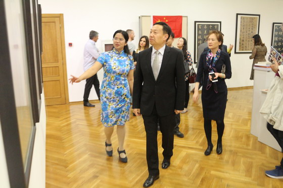 崔志伟大使高度赞扬了黑山大学孔子学院的展览:布局新颖、内容丰富;既有传统又有传承;既有静物展示,又有现场表演;效果良好,反响热烈。