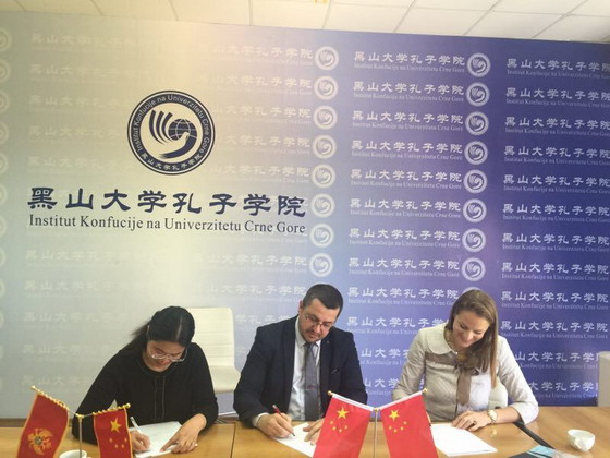 当地时间2017年4月13日,黑山大学孔子学院与黑山乒乓球协会顺利签署合作协议。孔子学院中方院长罗春霞、外方院长米莱娜·久卡诺维奇(Milena Đukanović)及黑山乒乓球协会会长内纳德·雷斯维奇(Nenadom Raičevićem)出席签字仪式。