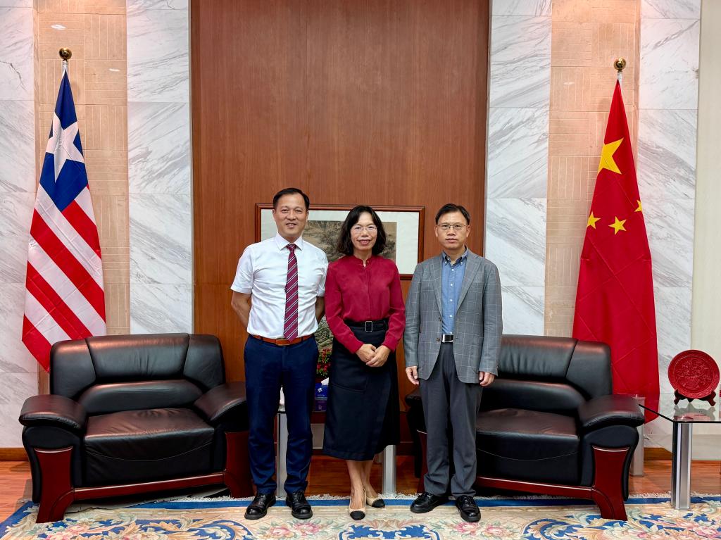 中国驻利比里亚大使尹承武先生(右一)接见云顶国际vip8866利大孔院新老两任中方院长