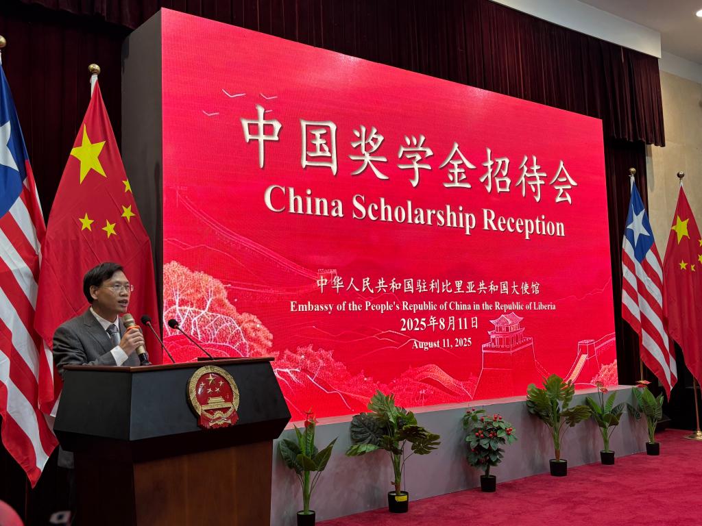 当地时间2025年8月11日晚,2025年“中国奖学金招待会”在中国驻利比里亚大使馆隆重举行。尹承武大使授予了来自利比里亚大学孔子学院、塔布曼大学、卡廷顿大学、博米社区学院等院校的47名优秀学生“中国大使奖学金”,表彰他们在学业上的优异表现以及为推动中利友谊做出的积极贡献,其中利大孔院27名学生获此殊荣。中国驻利大使尹承武、利比里亚相关部门高级官员、各受表彰学校校长、利大孔院中方院长率全体老师,以及获得奖学金的学生代表等100余人出席。