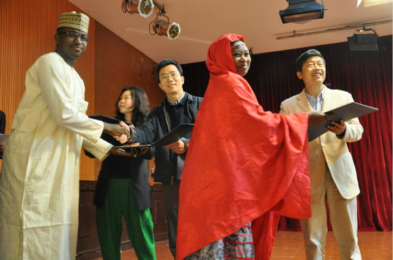随后,短训班教师代表王福雅和尼日利亚学员代表王敬贵先后发言。相关领导为学员一一颁发结业证书,并授予6名学员“优秀班干”和“优秀学员”称号。
