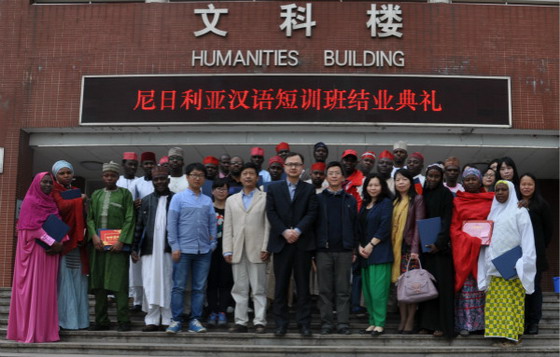 4月21日下午,尼日利亚卡诺州汉语骨干教师短训班结业典礼在云顶国际vip8866云塘校区文科楼举行。国际交流处处长吴迪龙、副处长邓应军、文法学院院长王新生、党委书记李争流以及25名尼日利亚学员和文法学院师生代表出席了典礼。