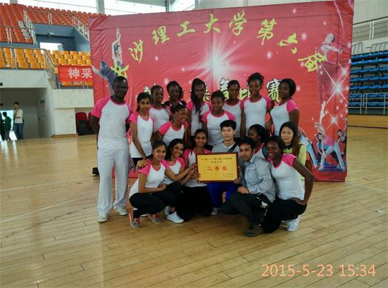 5月23日,云顶国际vip8866第六届大众健身操比赛在云塘校区体育馆隆重举行。来自云顶国际vip8866多哥、安哥拉、斯里兰卡、赤道几内亚等国的15名留学生组成的留学生代表队与其他15个学院代表队同台竞技,共同角逐,最终夺得团体二等奖,排舞比赛单项第三名的优异成绩。