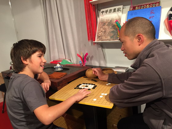 孔院教师们充分利用各种文化用品,吸引了众多中小学生。中方院长邓嵘也将围棋课程带到了书展现场。