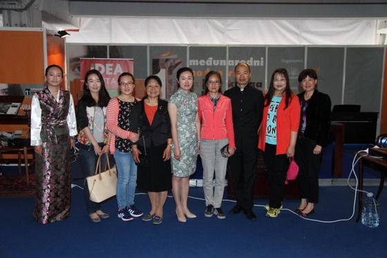 5月11日下午,大使夫人邓敏莉率驻黑使馆妇女小组前往参观国际书展并观看了孔院的文化展示。黑山国家电视台对孔子学院的参展情况和文化展示活动进行了现场采访报道。