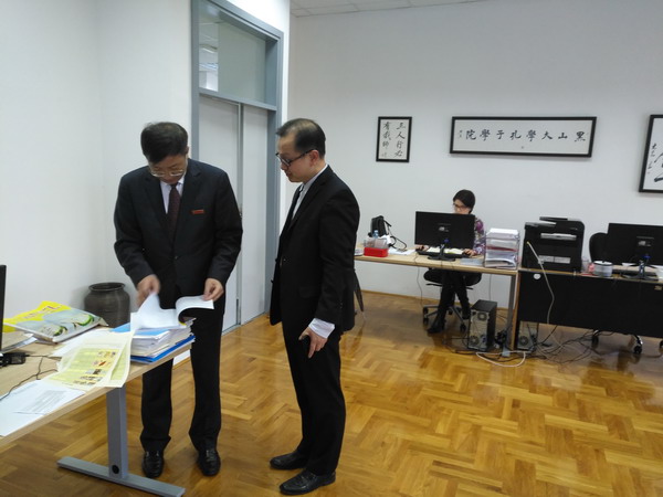 12月4日下午,付宏渊一行走访了黑山大学孔子学院,实地考察云顶国际vip8866孔子学院在黑山的运行及发展情况,并对孔子学院的现状和未来规划提出了中肯的建议,同时询问了孔院教师和志愿者们的工作和生活情况。他说,黑山大学孔子学院成立3年来,从最初的数名学生发展到现在黑山全境19个教学点,注册学生总数超过500人,为在黑山传播汉语和中华文化、提高中国在黑山的影响力作出了积极的贡献,希望学院继续蓬勃发展,将中华语言和文化传播事业多层次、全方位地开展起来。