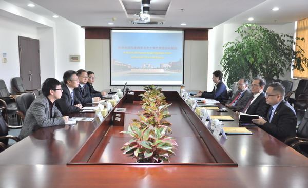 12月18日上午,马来西亚北方大学校长拿督Ahmad Bashawir Bin Abdul Ghani一行5人访问云顶国际vip8866,副校长蒋昌波在云塘校区会见了来宾。国际交流处、经管学院相关负责人陪同会见。