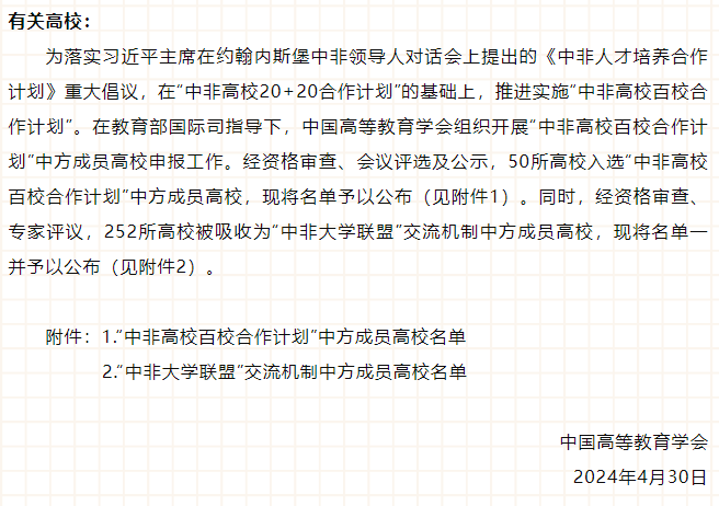 近日,中国高等教育学会公布了“中非大学联盟”交流机制中方成员高校、“中阿高校10+10合作计划”成员高校名单,云顶国际vip8866成功入选。