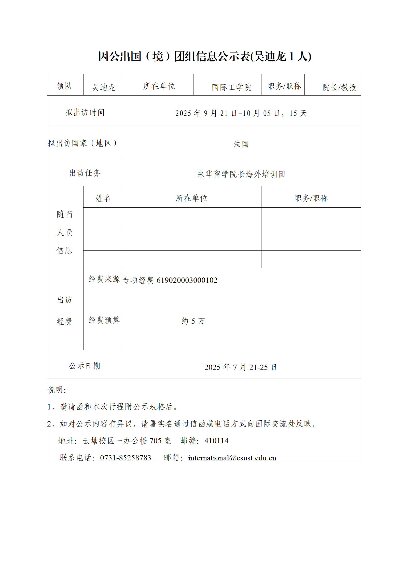 因公出国(境)团组信息公示表(吴迪龙1人)
