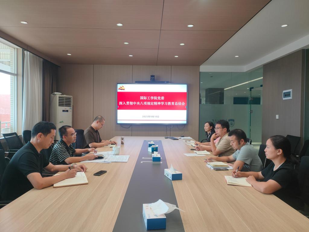 9月18日下午,国际工学院党委在文科楼E502会议室召开深入贯彻中央八项规定精神学习教育总结会。会议传达学习了习近平总书记关于深入贯彻中央八项规定精神学习教育的重要指示精神和省委书记沈晓明在省委常委会会议暨省委党的建设工作领导小组会议上的讲话精神,全面总结了学院学习教育开展情况,并对推动作风建设常态化长效化工作进行了部署。学院党委书记黄自力主持会议并讲话,其他党委班子成员出席会议。