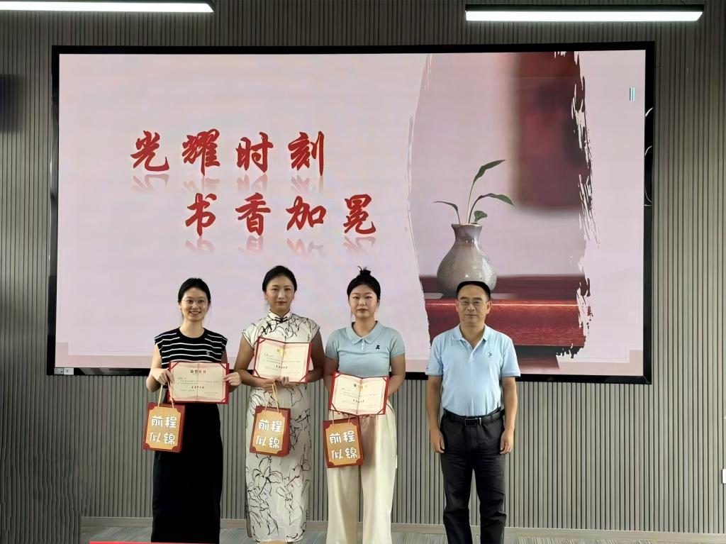 活动上半场紧扣“玫瑰书香”主题,来自行政办公室和教研室的周祎平、禹茜、吴倩文三位教师代表呈现了精心准备的阅读感悟。周祎平老师在分享党史教育精品《觉醒年代》时,用书中陈独秀的“青年如初春,如朝日,如百卉之萌动,如利刃之新发于硎”殷切话语,勉励老师们在教会学生专业技能的同时努力引导学生像书中所写百年前的“新青年”一样,拥有对自己、对时代和对未来的觉醒。禹茜老师分享了经典文学作品《Villete(维莱特)》,该书以作者在布鲁塞尔求学的真实经历为蓝本,通过女主人公露茜·斯诺的身份认知探索与社会价值追寻,展现了维多利亚时期知识女性的精神觉醒历程。吴倩文老师在分享另一部经典文学作品《杀死一只知更鸟》时表示,该书探讨了正义、偏见与良知,唤起了其对教育、道德和共情的重新思考。三位老师因精彩分享被授予“芙蓉悦读者”称号。