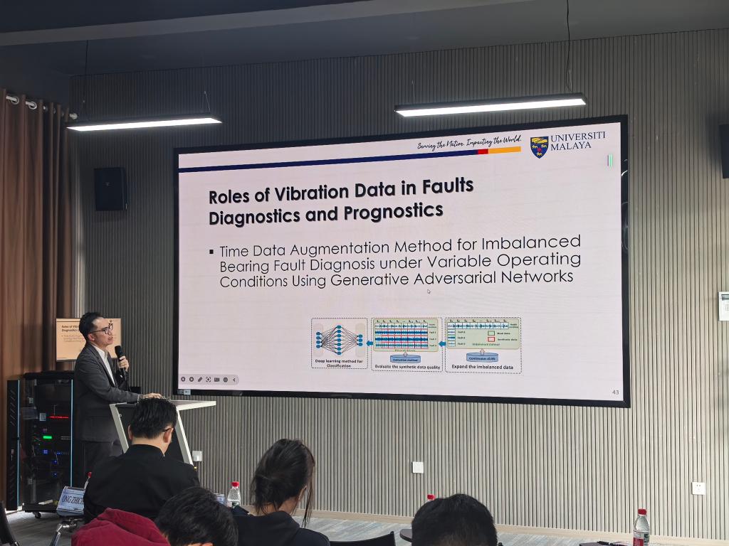 随后,由ONG ZHI CHAO副教授以“振动分析与状态监测的进展:探讨预测性维护和可持续性运营的新视角”为题作第二场讲座,介绍了团队研发的冲击同步模态分析(ISMA)技术,以及该技术在教学、科研及工业场景的成功应用,为设备“未病先防”的预测性维护提供了硬核支撑,最后他还向在场学生推介了马来亚大学针对云顶国际vip8866项目学生的研究生项目,鼓励大家前往马来亚大学深造。