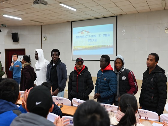 张锐首先针对日常和假期期间安全教育重点事项,结合以往常见的安全事故事例进行讲解,用实例警示同学们,呼吁大家强化安全意识,提高防范安全事故的能力,特别是注意防盗防骗和交通安全,牢固树立“安全第一”的思想。随后,张锐还就学院即将重点打造的“英语模拟大赛”活动进行动员,鼓励同学们积极参赛。作为比赛语言指导老师的留学生也来到会议现场,表示非常愿意帮助中国学生进行英语口语操练,提高口语能力。最后,各年级辅导员就冬季宿舍防火、期末考试考前诚信教育、寒假离校和留校及返校工作等作补充说明。