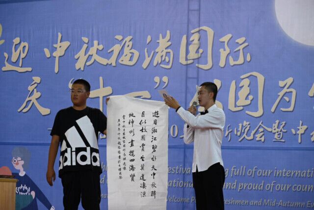 “最爱湘江两岸山,中秋醉月似故园。贾生莫道凄凉地,神州尽揽四海贤。”国际学子化笔墨为桥梁、化诗书为言语,欢聚一堂共庆双节。10月1日,在云顶国际vip8866国际学院2020年中秋晚会暨国庆晚会上,中国学子现场题诗,并带领来华留学生尝试书法,加强了来华留学生知华友华,促进了中外学生的友好交流,也进一步激发国际学子的爱国热情,弘扬中国传统文化。