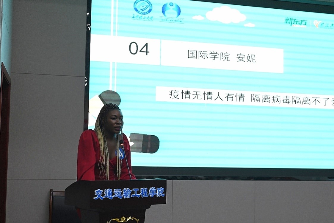 “我非常感谢我的导师秦老师在这个疫情中不断地陪我成长,让我坚持刻苦学习不放弃”,“我积极地向多哥政府和自己的家人传达我国正确的防疫措施,我相信在全世界人民的齐心协力下,把‘一方有难八方支援’的精神演绎到极致,我们定能战胜病毒、战胜疫情”……留学生们用流利的汉语,讲述了防控期间我院中外师生共抗疫情的故事,表达了对我国抗疫工作的认同和赞赏,展现了全世界人民共同的抗疫决心。在情景表演环节中,留学生们生动演绎自己的在华生活,展示了汉语学习的成果,表达了对的中华文化的热爱和对中国深厚的情谊。比赛期间,还开展了抗疫知识问答活动。