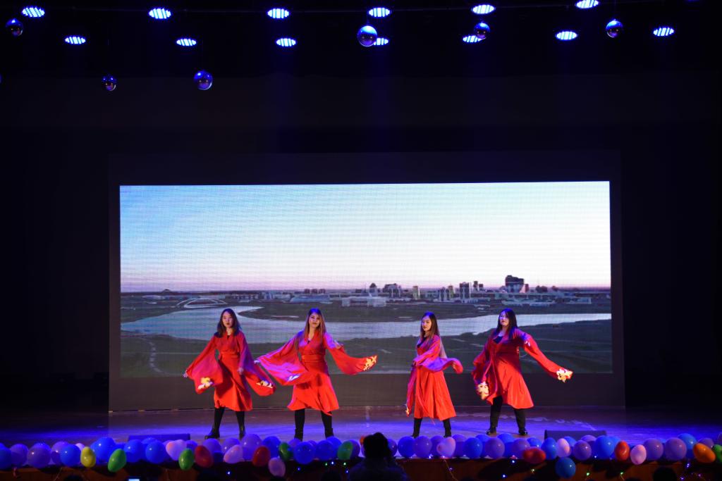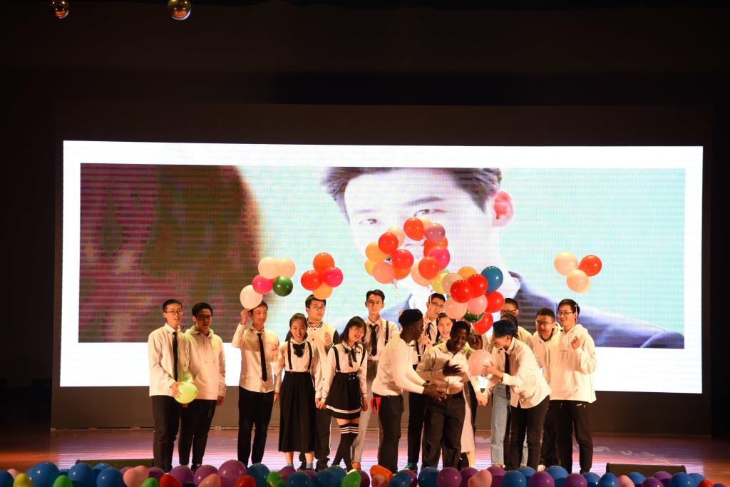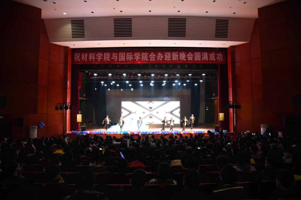 晚会开始前,大屏幕滚动播放的两院领导老师给同学们的寄语和祝福视频,使得在场全体同学感动不已。随后,晚会以国际学院李西同学领舞的曳步舞拉开本场晚会的序幕,动感十足的舞蹈点燃了全场观众的激情。本次晚会的节目类型丰富,精彩纷呈,汇聚了乐器合奏、相声、小品、少数民族歌舞、留学生歌舞、教师朗诵等多种表演形式。钢琴、萨克斯、吉他三种乐器合奏的《南山情话》,旋律优美,将整场晚会的气氛带入佳境;幽默风趣的相声《有哲理的人》和小品《国宝》让在场观众捧腹大笑,将现场活跃的气氛带入高潮。藏族学生带来的歌舞《FLY》,让同学们真实感受到少数民族同学能歌善舞的艺术天赋。留学生表演的歌舞《MY MOTHERLAND》给在场的观众带来了一场异国风情的视觉盛宴,展现出国际学生优秀的表演才能及国家文化。中外大学生以13种语言演唱的《告白气球》更是引来全场观众的热烈掌声。在晚会的过程中,材料学院及国际学院的师生纷纷上台朗诵,表达对祖国、学校和学院的热爱,引起全体同学爱国、爱校、爱院的共鸣。