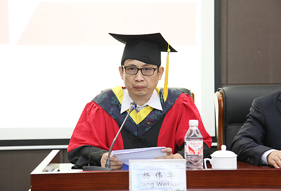 11名身穿学位服的赤道几内亚毕业班留学生依次上台,付宏渊为每一名毕业生颁发学位证书并拨穗。