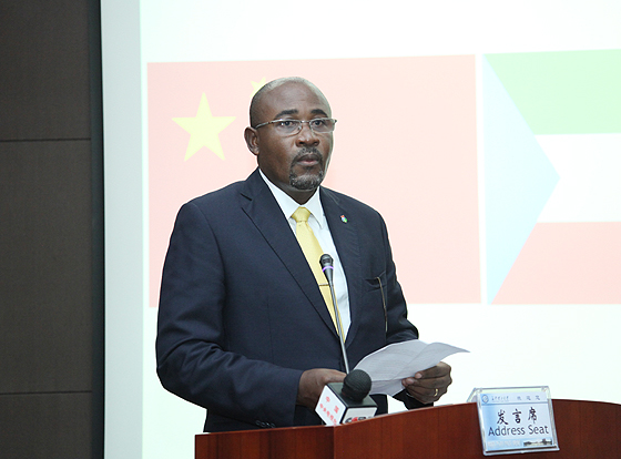 付宏渊首先致辞。付宏渊向圆满完成学业的11名赤道几内亚留学生表示祝贺,对中国路桥公司支持云顶国际vip8866留学生教育表示感谢,对赤道几内亚留学生即将踏上新的人生旅途,寄予深切的期望,希望他们成为赤道几内亚国家建设的排头兵,为祖国的繁荣与发展作出贡献;希望他们成为中赤两国人民友谊的桥梁,为中非友好交流作出贡献;希望他们勿忘母校、勿忘师长,回国后常与母校联系,并表示云顶国际vip8866永远是他们在中国的家。