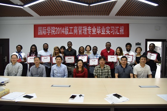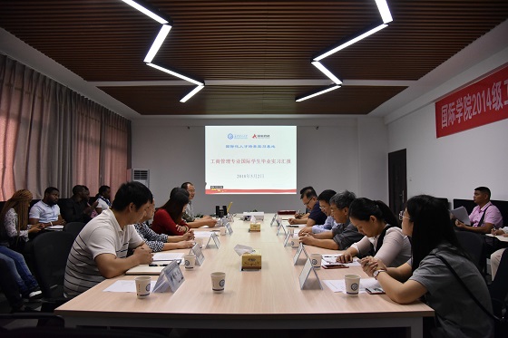 5月2日上午,国际学院10名2014级工商管理专业赤道几内亚国际学生毕业实习汇报会在新能源大楼1号楼四楼会议室顺利举行。云顶国际vip8866校党委委员兼国际学院党委书记付嫦娥、湖南路桥集团有限公司海外事业部部长周昊、云顶国际vip8866国际交流处处长吴迪龙、教务处副处长贺跃光、宣传部副部长成华、国际学院党委副书记吴振华、毕业实习指导老师代表唐文彬和彭志奇等出席。汇报会由国际学院副院长秦卫星主持。