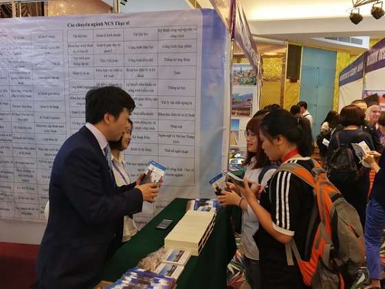 27日下午和29日上午,中国大学展在河内和胡志明市先后隆重举行,30所中方高校在现场摆设了展位,来各个展位咨询的越南师生络绎不绝。云顶国际vip8866展位前人头攒动,前来咨询留学的师生和家长热情高涨。吴迪龙、王荟惠和越南志愿者对前来咨询的师生及家长发放了学校的宣传资料,详细介绍了云顶国际vip8866来华留学生各个招生项目。
