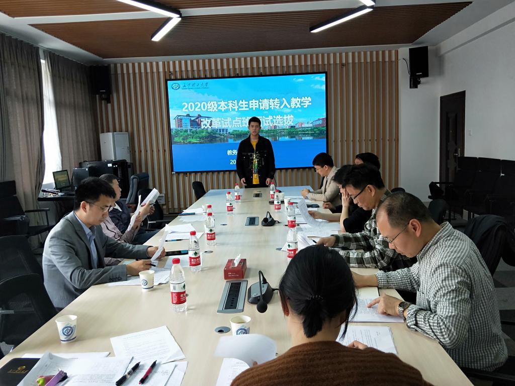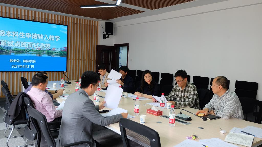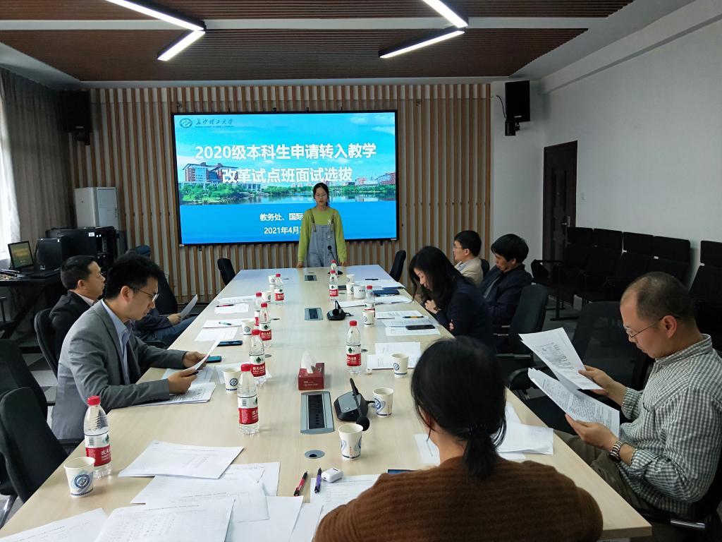 2021年4月21日下午,来自教务处、土木、汽机、能动、外语、国际等职能部门与教学院的7名专家组成面试专家组,对申请转入教学改革试点班初审合格的10名同学按照已公示的面试工作方案进行现场面试,由教务处副处长蒋菲担任面试组长。同学们首先以中英双语进行了精彩的自我介绍,简要阐释了申请转入教改班理由以及未来学业规划。随后专家们从思想道德素质、知识素养(特别是英语、数学能力等)、语言表达能力、分析解决问题能力、社会实践经验、创新精神与能力、专业发展规划等方面对学生进行综合评价,以百分制给出面试成绩,并按照综合成绩排名确定了最终入选名单。
